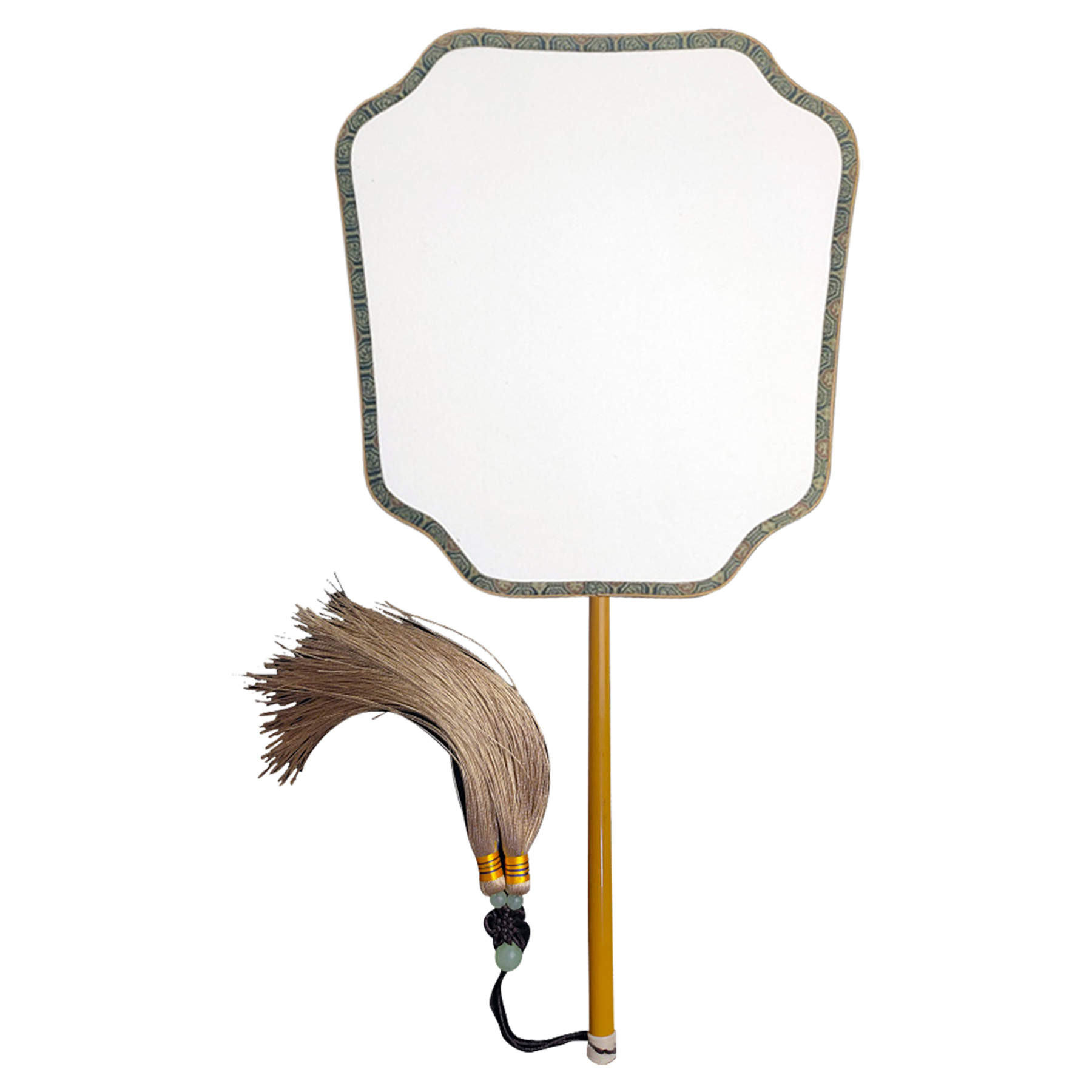 This fan is a unique fan, made of double-sided rice paper. You can print your favorite beautiful patterns on the double-sided fan, which is very suitable as a gift, etc. 10 1/5'' L x 10 1/5'' W