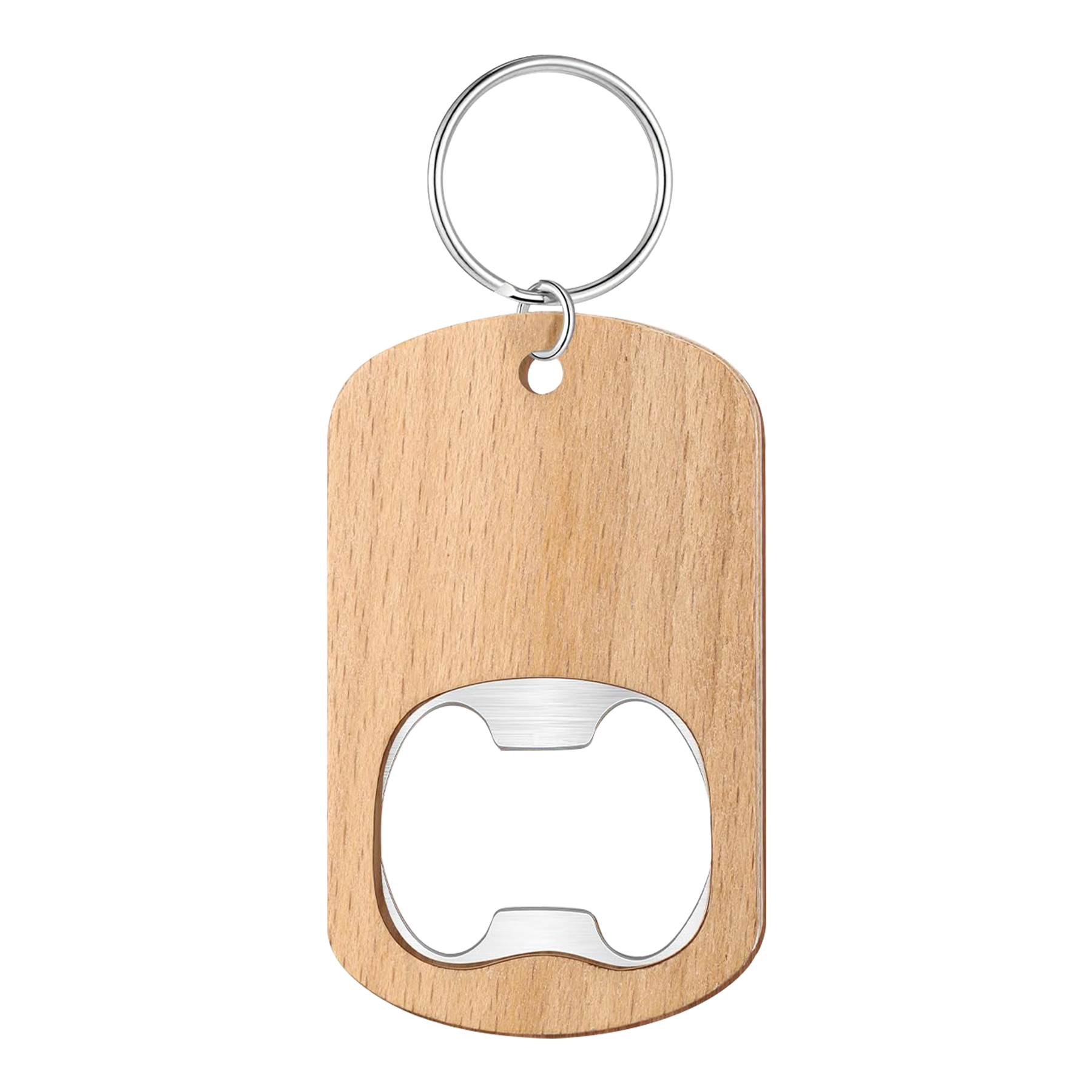 This bottle opener is selected high-quality 420 stainless steel as the main body of the bottle opener, sharp and durable, designed to fit the curvature of the bottle cap, making it easy to handle various bottle stoppers. Paired with a warm and comfortable natural wooden handle, finely polished to a delicate touch, it not only looks beautiful and elegant, but also increases the comfort and anti slip performance of use. It can be held for a long time without feeling tired. Innovatively integrated keychain function, made of high-strength alloy material, sturdy and durable, making it easy to directly connect the bottle opener to the keychain or bag for easy carrying. 1 3/5'' W x 3 7/10'' H