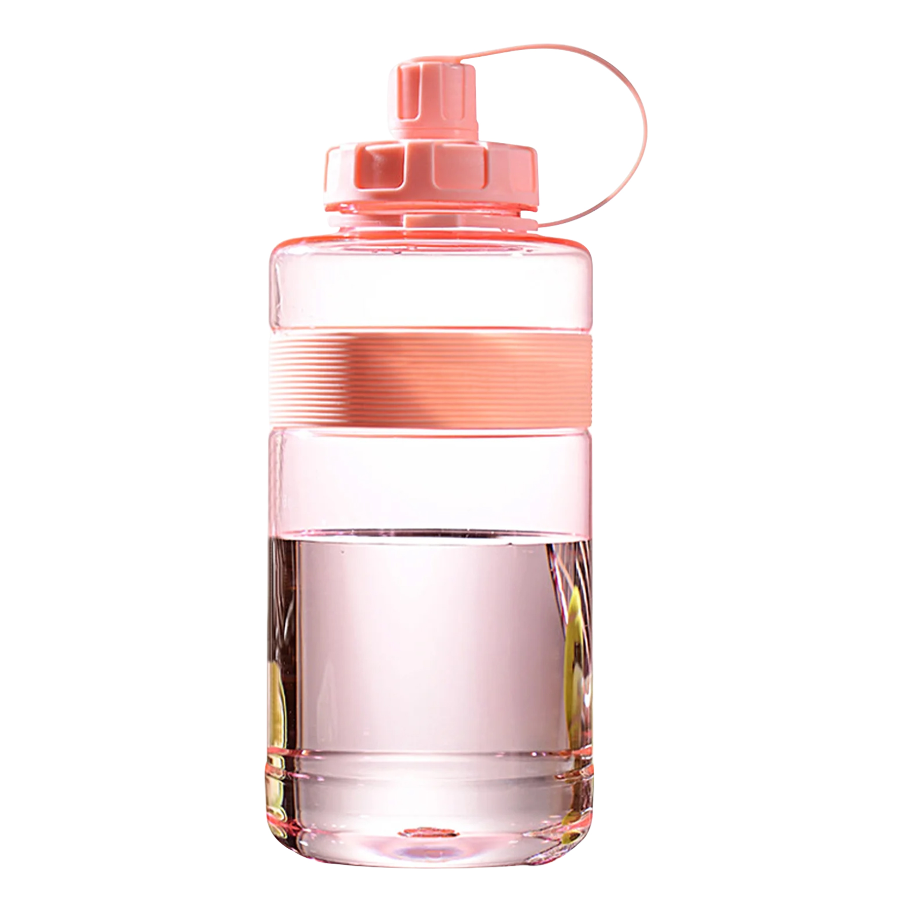 The plastic bottle is made of high-quality PC and PP material, food-grade and durable. With a safety latch and carry handle design, this sports water bottle is easy to carry, allows you to stay hydrated in the gym, yoga, jogging, exercise to match, travel, hiking, biking, tennis, fitness, camping and even in the office. Wide mouth makes cleaning and adding ice cubes easy. 2 3/4" D x 8 17/64" H